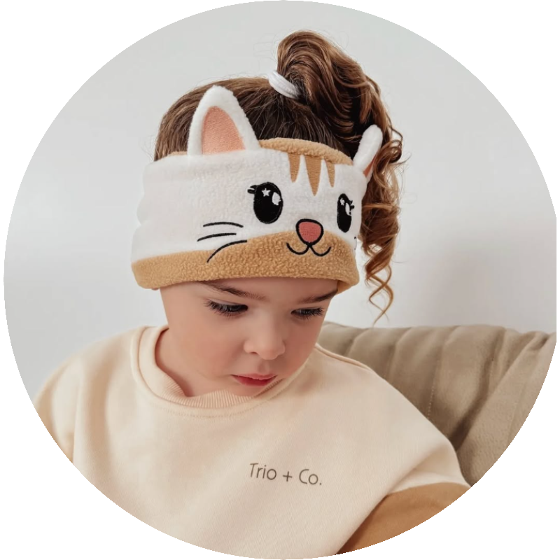 Our headband headphones are designed for kids aged 2 to 10. Thanks to the ultra-stretchy fleece material and adjustable speakers inside, they grow with your child and offer a comfy fit for toddlers, preschoolers, and even bigger kids.